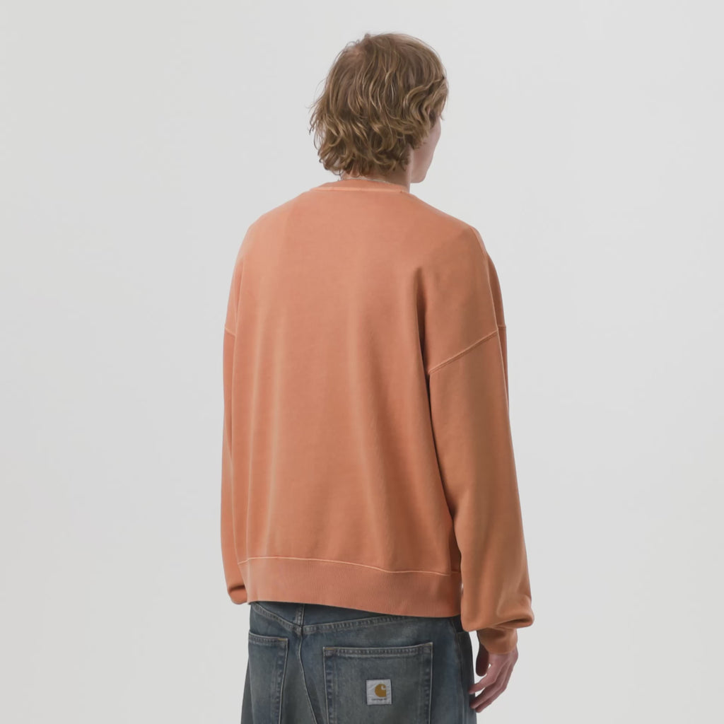Benton Sweat er lavet i en boxy løs pasform fra en ubørstet, kraftig bomuldsjersey, som er blevet beklædningsfarvet for en blødere følelse og kompleks farvekonfiguration. Et broderet script-logo vises på brystet.